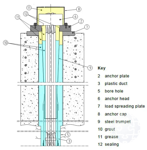 Figura 4: Configuración típica de anclaje con protección corrosión (IEC 61400-6:2020).